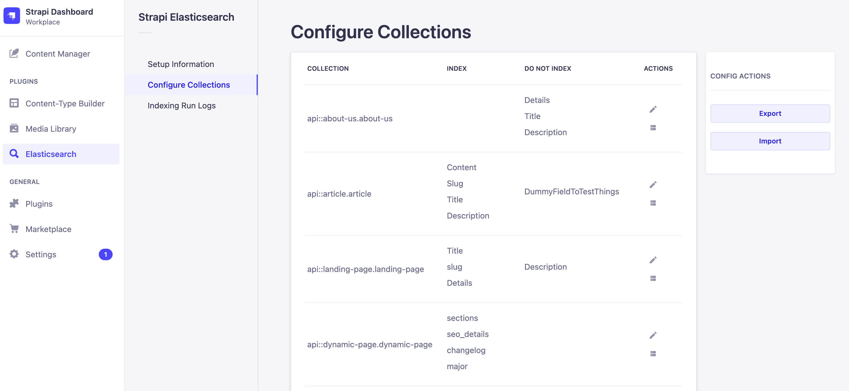 To enable backing up the indexing configuration or transferring it between various environments, these can be Exported / Imported from the Configure Collections view.